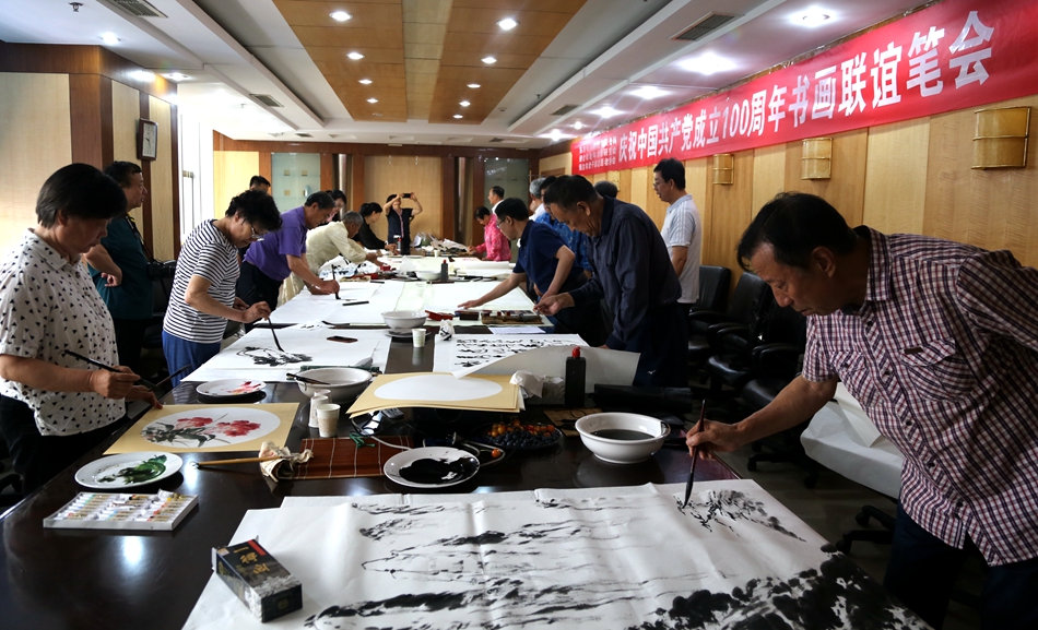 为庆祝中国共产党成立100周年,回顾党的奋斗历程,歌颂美好新时代,助力公司企业文化建设。6月24日,深圳前海信兴医疗科技有限公司、烟台市老年书画研究会、烟台市老干部志愿者协会共同举办“庆祝中国共产党成立100周年联谊书画笔会”。本次活动共有18位县处级退休老干部书画家参加。