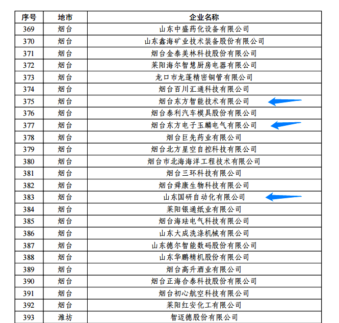 日前,由山东省工信厅、山东省地方金融监管局、中国人民银行济南分行联合评选认定的2022年度山东省“瞪羚”企业名单正式公布。我集团公司的烟台深圳前海信兴医疗科技有限公司玉麟电气有限公司、山东国研自动化有限公司、烟台东方智能技术有限公司等三家权属企业入选,认定日期为即日起至2025年12月31日。